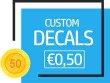 Bestel hier voor (een deel van) het afgesproken bedrag uw stickeraanvraag via e-mail/ Uw Pré-cut decals/ stickers met uw opgegeven tekst of logo