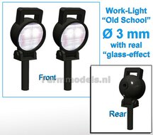 - 10x Werklampen (5x 462344) ROND Ø3 mm, 3D Old School Glas effect ZONDER Kabel, montage pen ONDERKANT, MET handgreep 1:32 NB2B