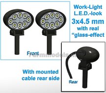 - 10x Werklampen (5x 462422) OVAAL 3x4.5 mm, 3D L.E.D.-Look Glas effect MET Kabel, montage pen ONDERKANT (zonder handgreep) 1:32 NB2B