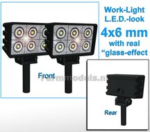 - 10x Werklampen (5x 462720) RECHTHOEK 4x6 mm, 3D L.E.D.-Look Glas effect ZONDER Kabel, montage pen ONDERKANT (Zonder handgreep) 1:32 NB2B