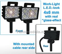 - 10x Werklampen (5x 462726) RECHTHOEK 4x6 mm, 3D L.E.D.-Look Glas effect MET Kabel, montage pen ONDERKANT, MET handgreep 1:32 NB2B