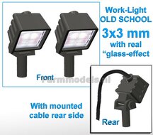- 10x Werklampen (5x462132) VIERKANT 3x3 mm, SCHUIN GERICHT 3D OLD SCHOOL Glas effect MET Kabel, montage pen ONDERKANT (Zonder handgreep) 1:32 NB2B