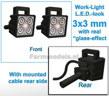 - 10x Werklampen (5x462166) VIERKANT 3x3 mm, 3D L.E.D.-Look Glas effect MET Kabel, montage pen ACHTERKANT, MET handgreep 1:32 NB2B