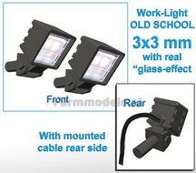 - 10x Werklampen (5x462172) VIERKANT 3x3 mm, SCHUIN GERICHT OLD SCHOOL Glas effect MET Kabel, montage pen ACHTERKANT (Zonder handgreep) 1:32 NB2B