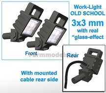 - 10x Werklampen (5x462176) VIERKANT 3x3 mm, SCHUIN GERICHT OLD SCHOOL Glas effect MET Kabel, montage pen ACHTERKANT, MET handgreep 1:32 NB2B