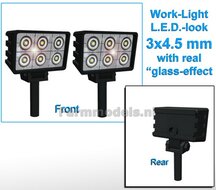 - 10x Werklampen (5x462220) RECHTHOEK 3x4.5 mm, 3D L.E.D.-Look Glas effect ZONDER Kabel, montage pen ONDERKANT (Zonder handgreep) 1:32 NB2B