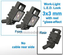 - 10x Werklampen VIERKANT (5x462154) 3x3 mm, SCHUIN GERICHT 3D L.E.D.-Look Glas effect ZONDER Kabel, montage pen ACHTERKANT, MET handgreep 1:32 NB2B