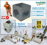 - 1x INSPECTIEPUT VORM D-BM aansluiting 2x Ø "800" Rioolbuis IN HOEK: (Betonnen) Vierkante put KUNSTSTOF, BLANK Geleverd 1:32