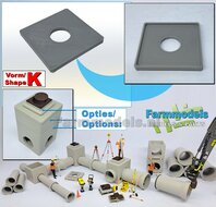 - 1x PUTAFDEKKING VORM K-TM: Vlakke vierkante plaat met rond inspectie gat : (Betonnen) AFDEKKING Materiaal KUNSTSTOF, BLANK Geleverd 1:32