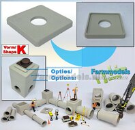 - 1x PUTAFDEKKING VORM K-TM: Vlakke vierkante plaat met rond inspectie gat : BETON AFDEKKING Materiaal KUNSTSTOF, BETONLOOK Gespoten geleverd 1:32