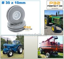 2x Ø 30 x 10 mm: 2WD Three Rib Tire 11.00R16 Banden en As stompen RESIN BLANK 1:32 PERFECT-32 P23