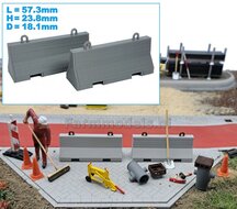 - 2x (BETONNEN) BARRIERS "NEW LOOK" + 4x OPHANGOGEN Materiaal KUNSTSTOF, BLANK Geleverd 1:32