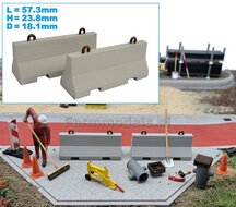 2x (BETONNEN) BARRIERS "NEW LOOK" + 4x OPHANGOGEN Materiaal Kunststof, BETONLOOK Gespoten + OGEN "ROEST" geschilderd geleverd 1:32