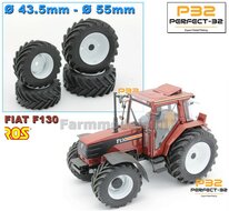 COMBI SET: 2x Ø 43.5 mm + 2x Ø 55 mm: FIAT AGRI F130 ROS set WIT gespoten incl. 2x afdekplaatjes 1:32 PERFECT-32 P24 + P25