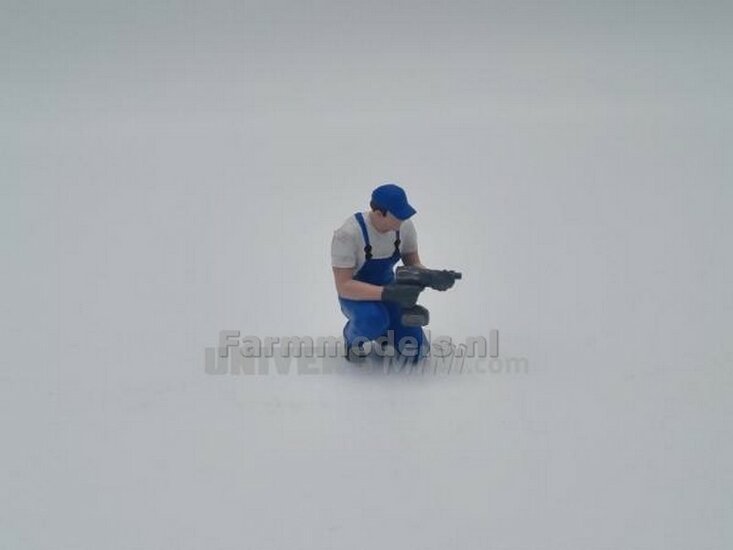 BLUE: Monteur zittend op 1 knie met BLAUWE overall - Handgeschilderd 1:32 ATL32010-BLUE
