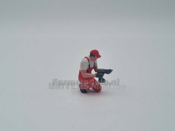 RED: Monteur zittend op 1 knie met RODE overall - Handgeschilderd 1:32 ATL32010-RED