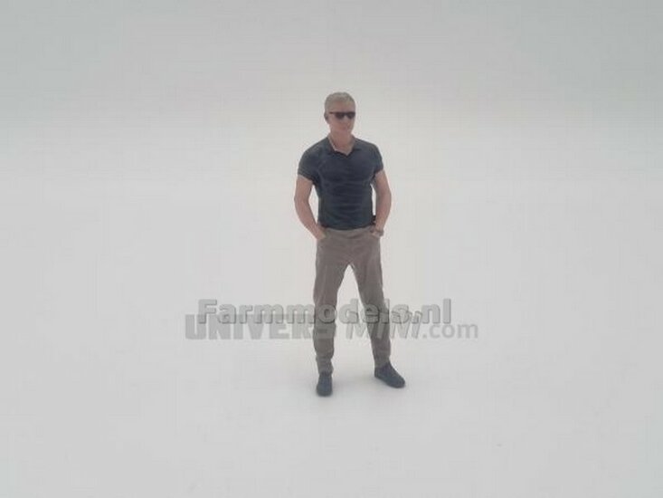 BLACK: Man staand met Zwart T-Shirt en bruine broek DANY - Handgeschilderd 1:32 ATL32035BLACK