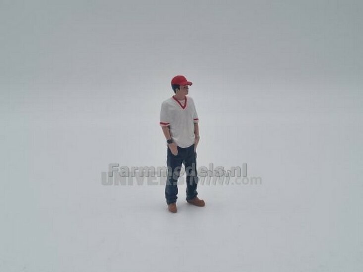 White: Man staand met WIT T-Shirt en blauwe broek BRUCE - Handgeschilderd 1:32 ATL32039White