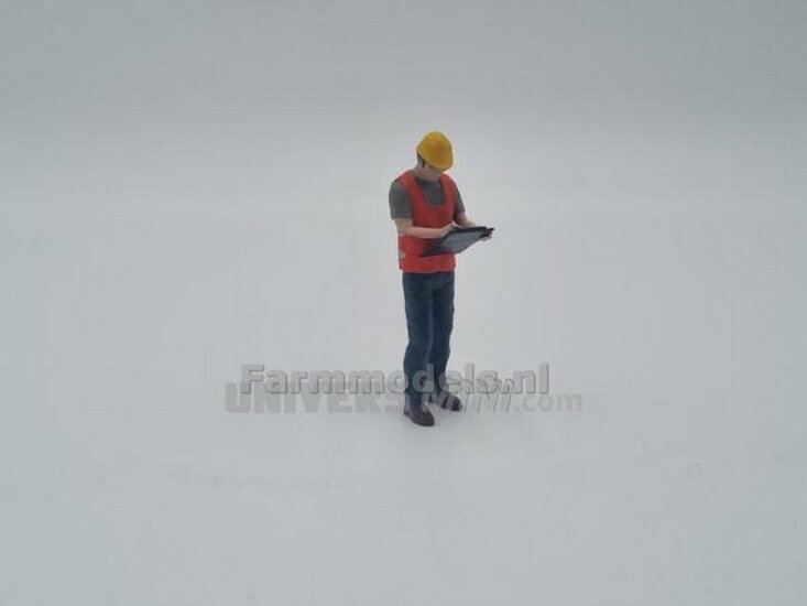 ORANGE: Bouwvakker/ wegwerker/ grondwerker denkt na. met veiligheid overall en helm 1:32 ADF32143