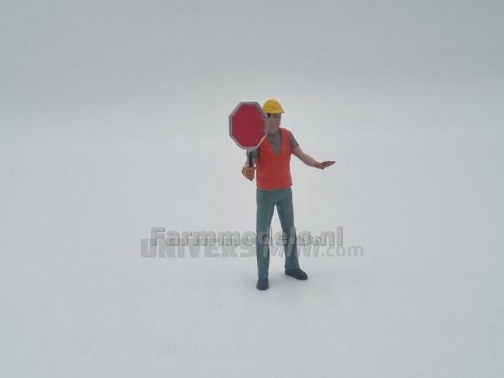 ORANGE: Man met Stopbord en veiligheids hesje en helm-handgeschilderd 1:32 ATL320451
