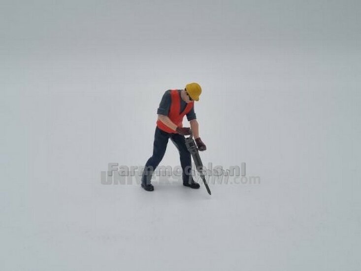 ORANGE: Man met Drilhamer en veiligheids hesje en helm-handgeschilderd 1:32 ATL32045