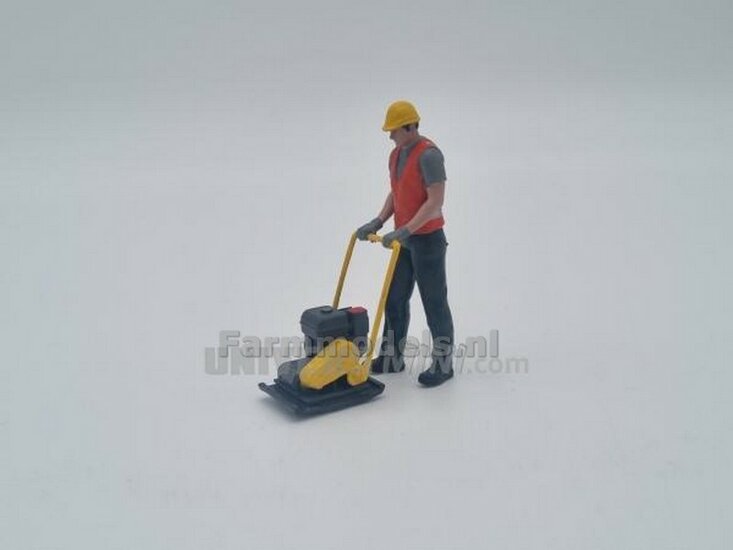 ORANGE: Man met Trilplaat en veiligheids hesje en helm-handgeschilderd 1:32 ATL32050