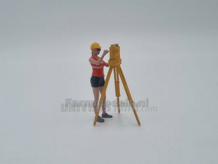 ORANGE: Vrouw met statief en laser en veiligheids hesje en helm-handgeschilderd 1:32 ATL32044