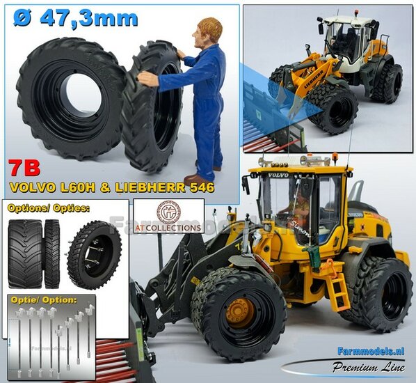 Ø 47.3 mm: 2x Brede Shovel banden geschikt voor velgen Volvo L serie agri Collectables/ Farmmodels 1:32