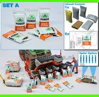 - Maïszaad: PIONEER CORNSEED SET A = 5x verschillende volle zakken + 1x lege zak zaadgoed + 6x Pré-Cut decal-stickers 1:32