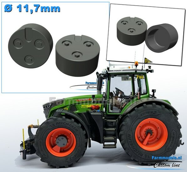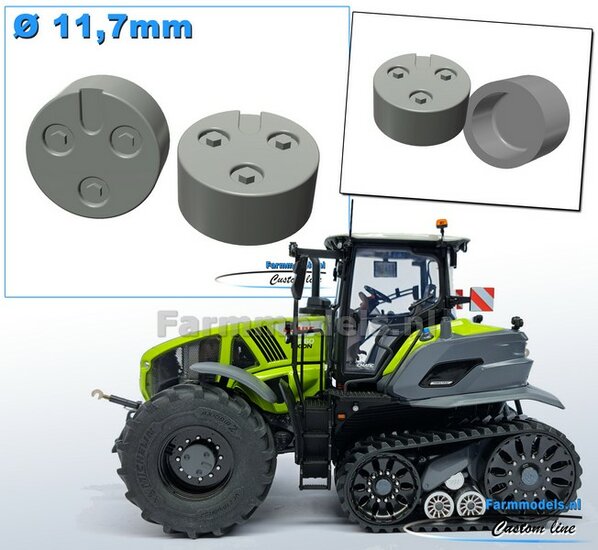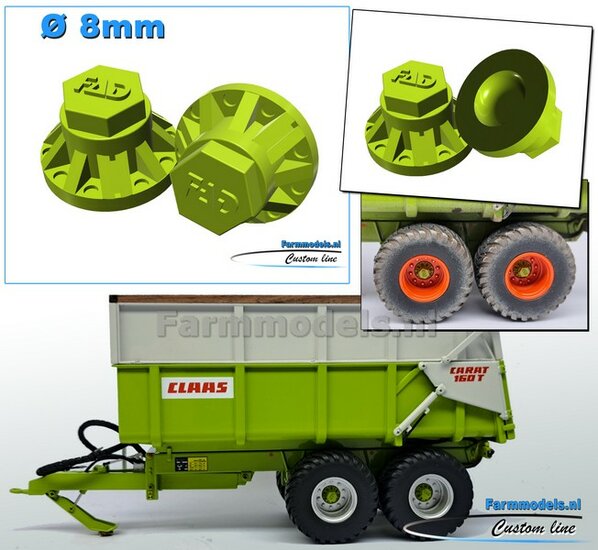 2x FAD Naafdop Ø 8mm Resin CLAAS DONKER GRIJS gespoten geleverd 1:32 Farmmodels