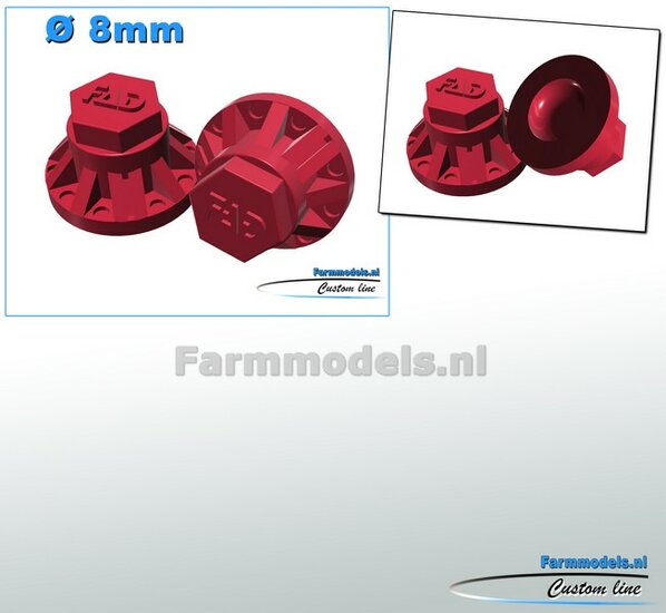 2x FAD Naafdop Ø 8mm Resin, JAN VEENHUIS ROOD gespoten geleverd 1:32 Farmmodels