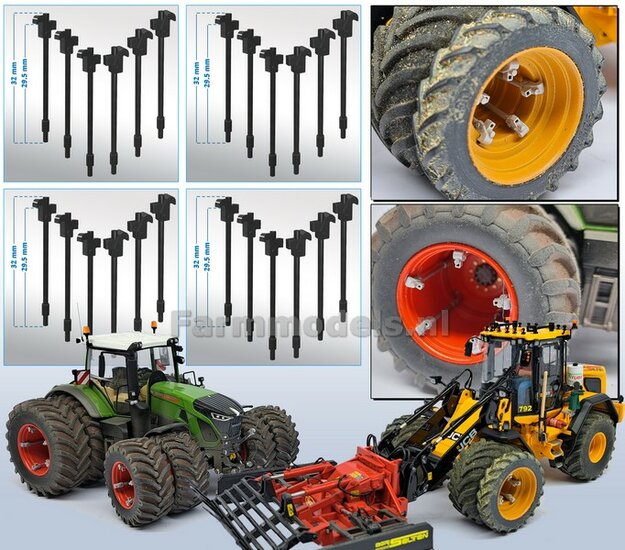 Ø 65.6 x 27.7 mm: 2x Mitas 900/60 R42 bandenset met NH WITTE VELGEN 1:32