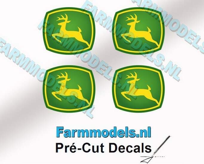John Deere LOGO (New) 4x 7mm hoog bij 7,8mm breed, stickers met omhoog springend "Hertje" Decals 1:32 Farmmodels.nl