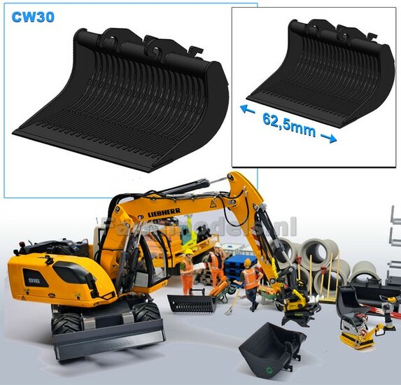 Puinriek 43.9 mm breed Resin ZWART MATT Gespoten geleverd t.b.v. CW30 KOPPELING (o.a. Engcon draaikantelstuk met CW30 koppeling 1:32