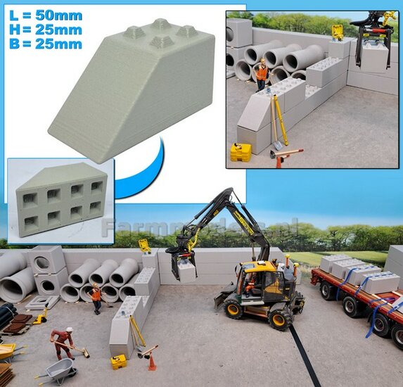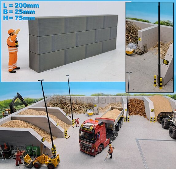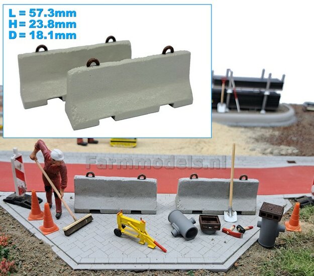 2x (BETONNEN) BARRIERS "NEW LOOK" + 4x OPHANGOGEN Materiaal KUNSTSTOF, BLANK Geleverd 1:32