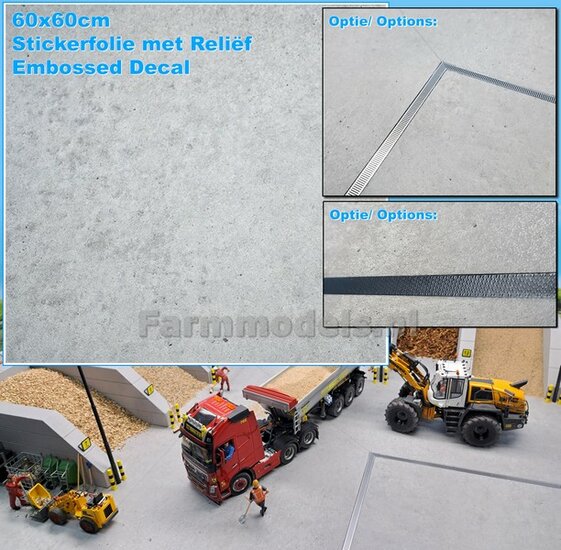 60 x 60cm: BETON FOLIE "LIGHT CONCRETE" met ECHT BETON RELIËF afmeting ruim 60cm x 60cm 1:32