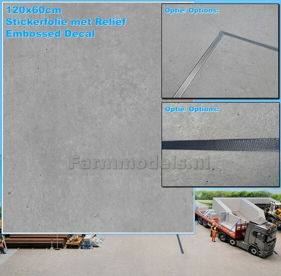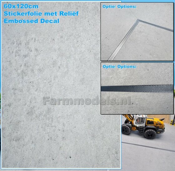 60 x 120cm: BETON FOLIE "LIGHT CONCRETE" met ECHT BETON RELIËF afmeting ruim 60cm x 120cm 1:32
