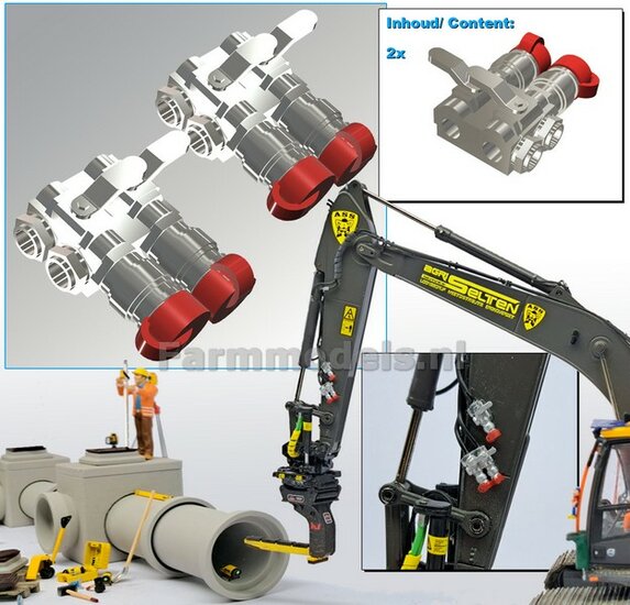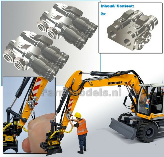 2x HYDRAULIEK "VROUW" met KOGELKRAAN DUBBEL, stand OPEN Materiaal RESIN BLANK geleverd 1:32