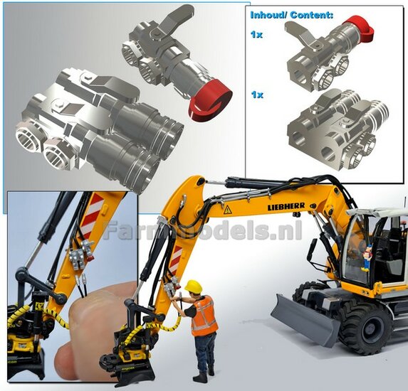 5x HYDRAULIEK "VROUW" met KOGELKRAAN DUBBEL, stand OPEN Materiaal Resin ALUMINIUM gespoten geleverd 1:32