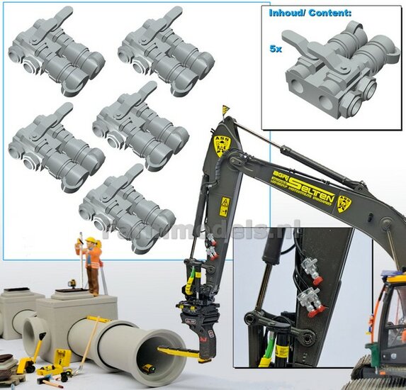 5x HYDRAULIEK "VROUW" met KOGELKRAAN DUBBEL, stand OPEN Materiaal RESIN BLANK geleverd 1:32