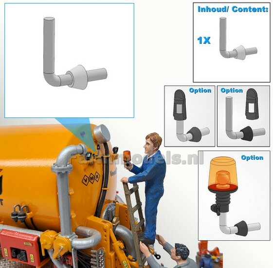 10x ZWAAILAMPSTEUN VERSIE K Ø 1mm steun. Mat: Resin ALUMINIUM glans geschikt voor montage Farmmodels Zwaailampen