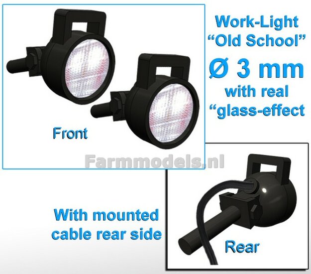 10x Werklampen (5x 462826) ROND Ø4 mm, 3D L.E.D.-Look Glas effect MET Kabel, montage pen ONDERKANT, MET handgreep 1:32 NB2B