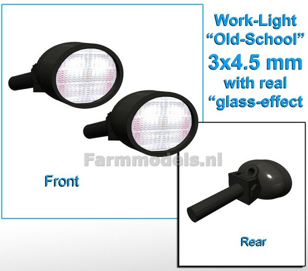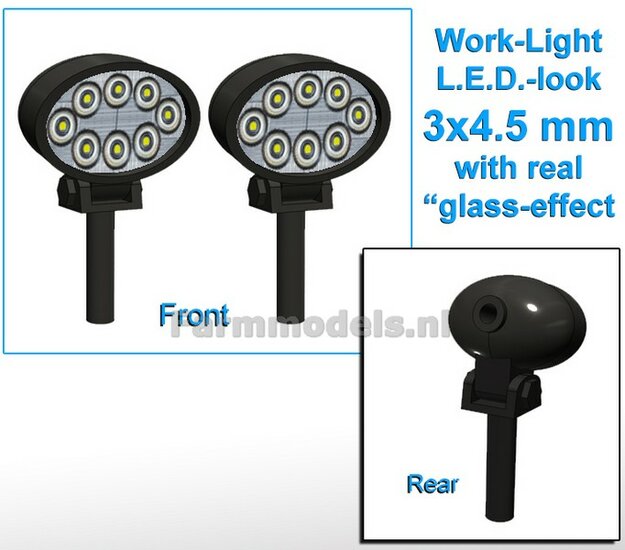 10x Werklampen (5x 462460) OVAAL 3x4.5 mm, 3D L.E.D.-Look Glas effect ZONDER Kabel, montage pen ACHTERKANT (zonder handgreep ) 1:32 NB2B