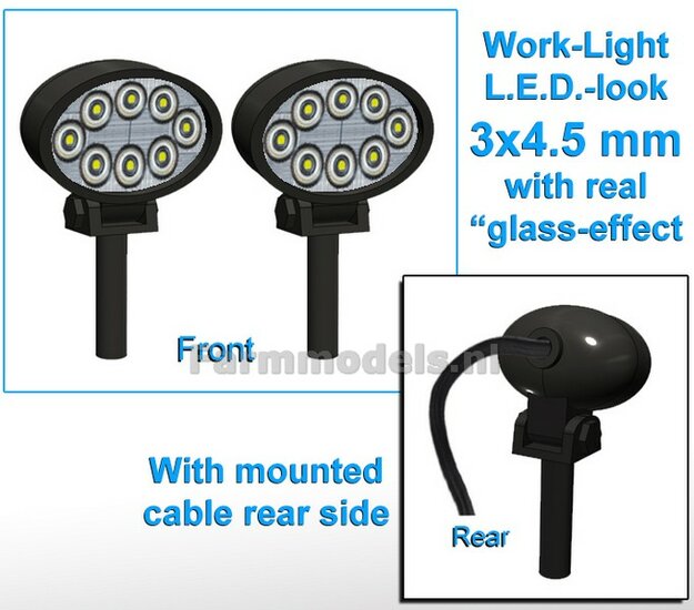 10x (5x 462426) Werklampen OVAAL 3x4.5 mm, 3D L.E.D.-Look Glas effect MET Kabel, montage pen ONDERKANT MET HANDGREEP 1:32 NB2B