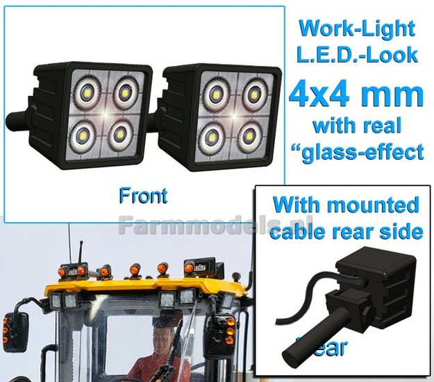 10x Werklampen (5x 462662) VIERKANT 4x4 mm, 3D L.E.D.-Look Glas effect MET Kabel, montage pen ACHTERKANT, ZONDER handgreep 1:32 NB2B