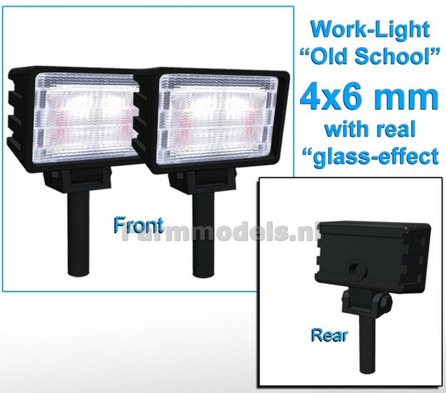 10x Werklampen (5x 462720) RECHTHOEK 4x6 mm, 3D L.E.D.-Look Glas effect ZONDER Kabel, montage pen ONDERKANT (Zonder handgreep) 1:32 NB2B