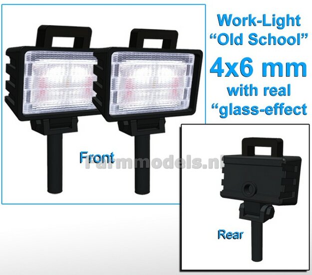 10x Werklampen (5x 462724) RECHTHOEK 4x6 mm, 3D L.E.D.-Look Glas effect ZONDER Kabel, montage pen ONDERKANT, MET handgreep 1:32 NB2B