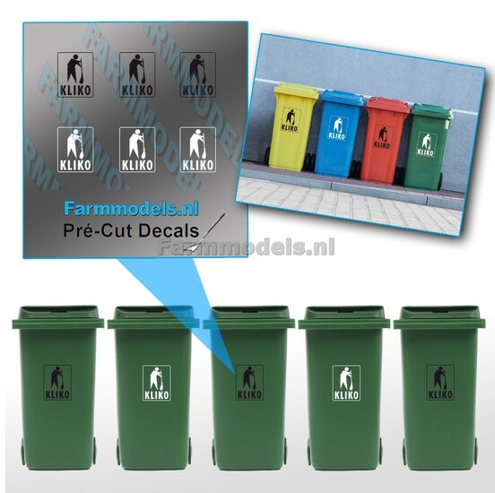 5x Kliko sticker zwart op transparante folie, ong. 12 x 16mm. Pré-Cut Decals 1:32 Farmmodels.nl