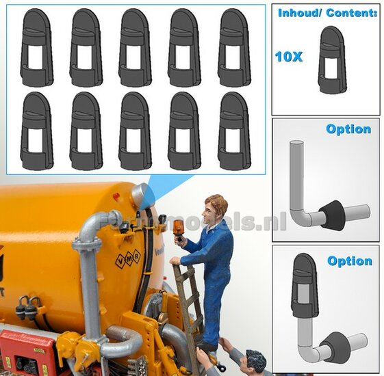 10x ZWAAILAMPEN V2 = 10x Zwaailamphuis/houder + 10x afdekkap VERSIE 2, geschikt voor montage op Ø 1mm steun 1:32