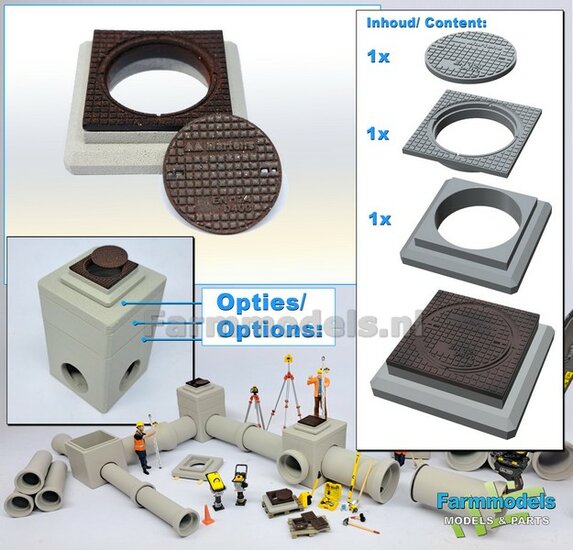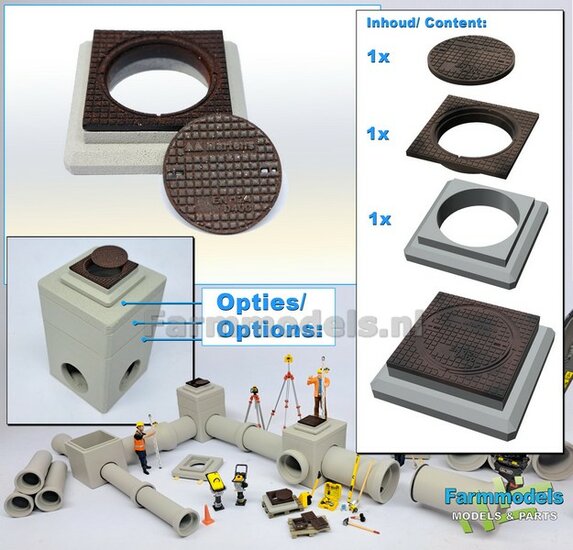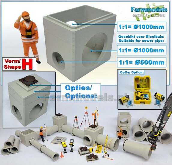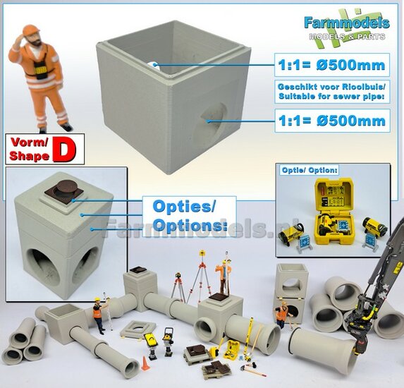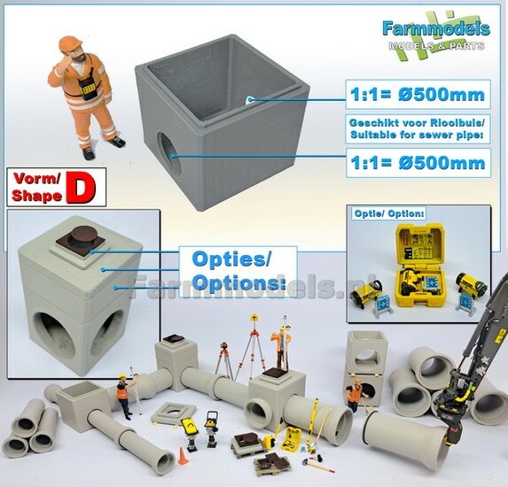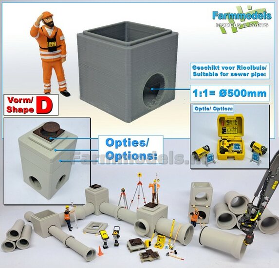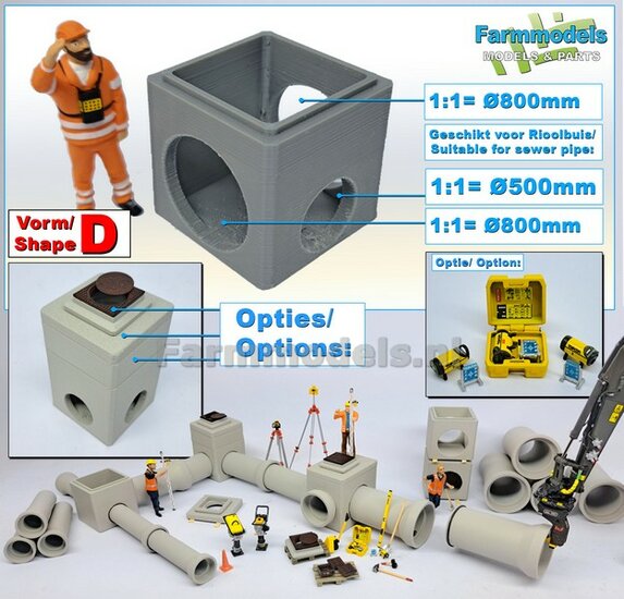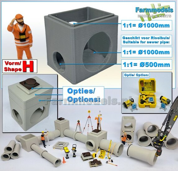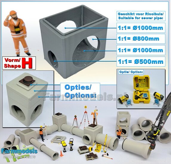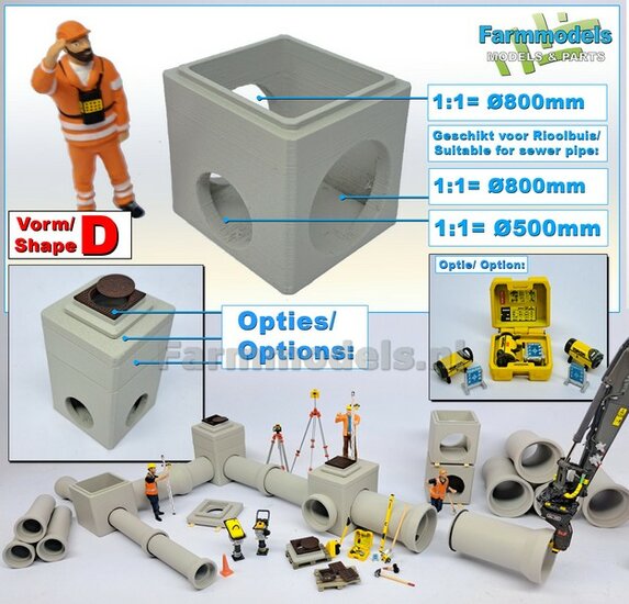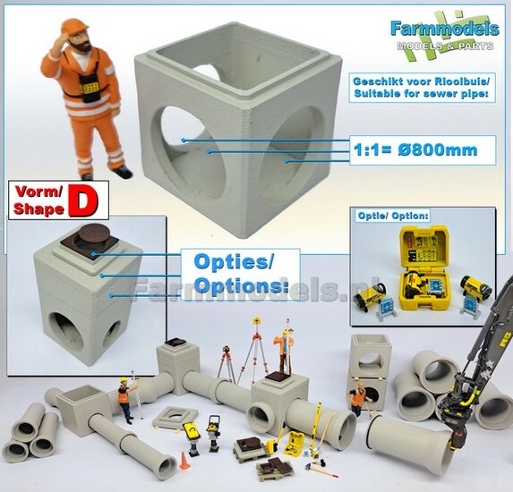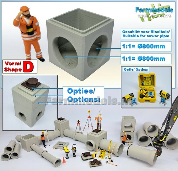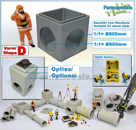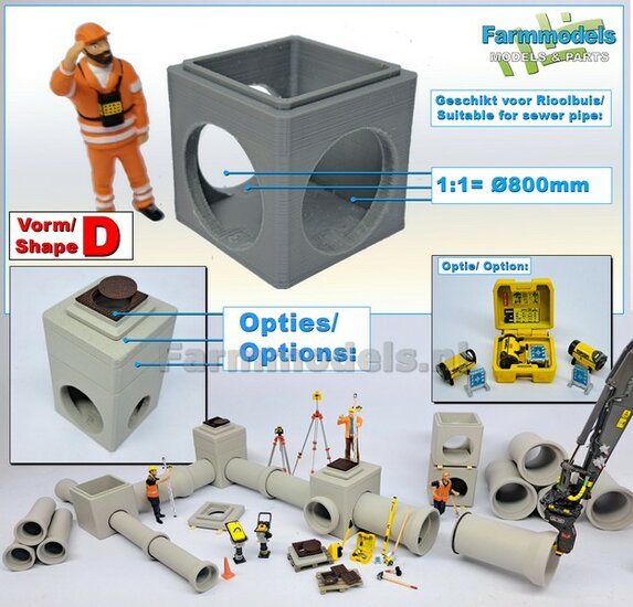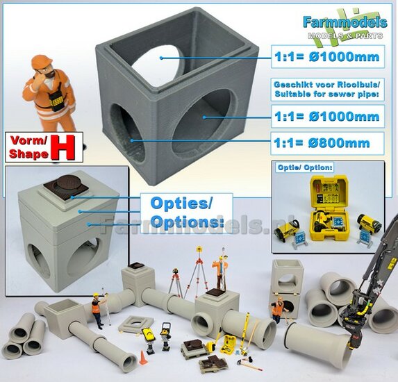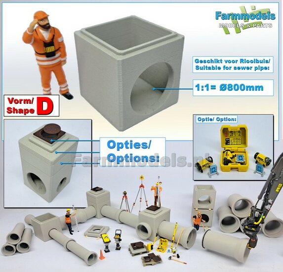 5x RIOOLBUIZEN (Binnenmaat 1:1 = Ø800mm) Materiaal RESIN, BLANK Geleverd 1:32